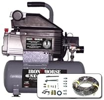 Lightweight for easy portability. High efficiency reed valves for maximum performance. Cast iron cylinder oil lubricated for professional use. Thermally protected 1 HP running/2.5 HP peak 115 volt electric motor is CSA/US approved. Easy view oil site ga uge. Convenient oil drain on front of unit. Quick coupler and regulator and gauge included for convenient control of line pressure.